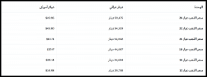 من خلال الجدول أدناه تستطيع معرفة أسعار الذهب أول بأول في العراق ، حيث كان الأرتفاع هو سيد الموقف هناك ، من المتوقع أن نرى صعود جديد للذهب في الأيام القادمة :